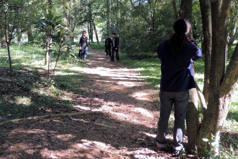 Abaixo, registros da diretora Desirée Pessoa da gravação de projeções a serem utilizadas no espetáculo. Tanto a gravação dos vídeos quanto a confecção da cabeça de coelho são de Carlos de los Santos, parceiro do grupo.